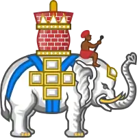 - Denne elefant afbildes i et blåt felt, hvilket kan være en henvisning til jomfru Maria, der traditionelt afbildes i blå klæder; om der er en forbindelse til elefantfigurens nuværende blå dækken, er uvist.