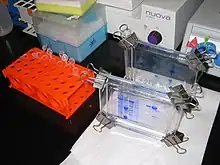 - Agarose-gelelektroforese, de:Agarose-Gelelektrophorese