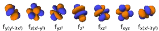 | l = 3 | m = -3, -2, -1, 0, +1, +2, +3 | → 7 type f-orbitaler | → maks. 14 elektroner | |