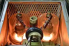 - I den direkte opvarmede katode anvendes glødeterminalerne også som katodeterminal.