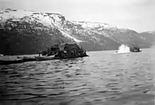 Tyske soldater med improviseret færge over Elsfjord i maj 1040.