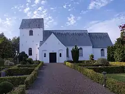 ![]() Eltang Kirke, set fra syd ved kirkegårdens indgang | |