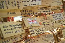 Ema (絵馬 bogst. hestebillede) er små trætavler malet på den ene side med fortrykte billeder, som man kan købe ved næsten alle japanske shinto-skrin og buddistiske templer og skrive sine ønsker til guderne på. Den tomme side benyttes til at skrive sine ønsker på, og efterfølgende bliver tavlen hængt op et dertil beregnet sted. Man kan for eksempel ønske sig, at man består en prøve. Man håber altså på genze riyaku, velgerninger i denne verden. Andre ting der sælges i de religiøse institutioner i Japan, og som hænger sammen med genze-riyaku-systemet og landets religion i almindelighed, tæller for eksempel omikuji (papirsedler med spådomme), omamori, ofuda, daruma (lykkebringende figurer) og engimono.