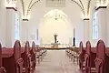 Kirkeskibet er veloplyst af de fire fag store vinduer i hver langside. Det er dækket af et tøndehvælv i kløverbladsform, der er dekoreret med malede borter. Hvælvet bæres af halvsøjler mellem vinduerne. Søjlerne er gråmalede, mens væggene i øvrigt er dækket med hvide, perforerede, akustiske plader.