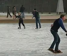 Når man på isskøjter har opnået en fart og skøjter ligeud, har man faktisk lagret muskelenergi som kinetisk energi. Grundet den lave friktion med isen og luftmodstanden, taber man kun langsomt fart.