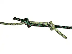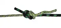 Knobet bindes ved, at man binder den ene ende fast et stykke under den anden ende med en almindelig knude, og derefter binder den løse ende fast et stykke under den første knude.