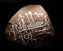 Tegning af illustrationerne på Engelstrupstenen (tv.) og Herrestrupstenen