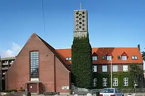Den nuværende menighedsfløj blev opført 1923-24 ved arkitekt Julius Smith. Og den nederste etage, nu menighedssal, blev benyttet som kirkerum, indtil den endelige kirke kunne fuldføres. Dette skete imidlertid først i 1960. Dette skyldtes til dels, at der i sognet også var et andet kirkeprojekt, idet Bavnehøj Kirke blev taget i brug – ligeledes som en foreløbig kirke – i 1948. Kirken er tegnet af arkitekt Richard Jessen og står udvendigt i røde mursten, idet tårnet dog er i beton med åbent klokkerum og korsformede udsmykninger. Kirken er indviet 1960.