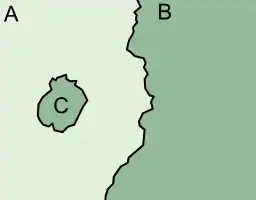 Begreberne enklave/eksklave kan principielt bruges på andre niveauer end stater. Eksempelvis er Frederiksberg Kommune en enklave i Københavns Kommune, og Schweiz-Liechtenstein er en enklave i EU.