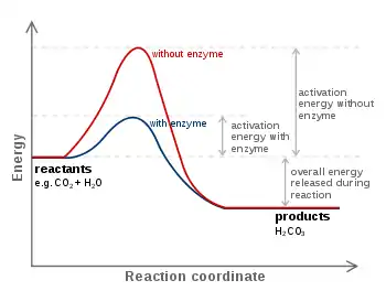 Mekanismen for enzymkatalyse minder principielt om andre typer af kemisk katalyse. Ved at stille en alternativ reaktionsrute til rådighed og stabilisere intermediater reducerer enzymet den energi, der behøves for at nå til reaktionens højeste transition state, aktiveringsenergien. Reduktionen af aktiveringsenergien (ΔG) forøger antallet af substrater med nok energi til at nå transition statets energi og danne produktet.