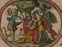 ![]() Afbildning af mordet på Eorpwald fra John Speed Saxon Heptarchy (1611).[1] | |