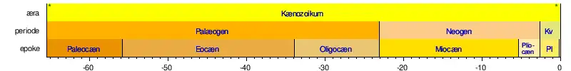 - Paleocæn, (65,5 til 55,8 mio. år siden).