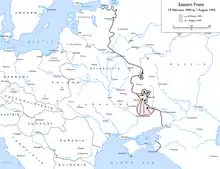 I september 1943 trak von Manstein sig tilbage til den vestlige bred af floden Dnepr, og forårsagede store tab for den Røde Hær. Fra oktober til midten af januar 1944 stabiliserede von Manstein situationen på sydfronten. Den Røde Hær etablerede imidlertid et frontfremspring fra Kijev og var indenfor rækkevidde af den afgørende by Zhitomir. Tyskerne gennemførte en vellykket modoffensiv, hvori 1. SS Division Leibstandarte SS Adolf Hitler og 2. SS Division Das Reich, sammen med 1., 7., 19. og 25. panserdivision samt 68. infanteridivision manøvrerede rundt om flanken på de sovjetiske styrker foran Zhitomir. Adskillige bemærkelsesværdige sejre blev vundet, ved Brussilov, Radomyshl og Meleni, under ledelse af general Hermann Balck, men på grund af en glansløs præstation af generaloberst Rauss, den nye chef for 4. panserarmé, blev frontfremspringet ved Kijev ikke elimineret. I slutningen af januar 1944 blev von Manstein tvunget til at trække sig længere mod vest af den sovjetiske offensiv. I midten af februar 1944 undlod han at adlyde Hitlers ordre og beordrede 11. og 42. korps (der bestod af 56.000 mand i 6 divisioner) til at bryde ud af den såkaldte "Korsun-lomme",[4] hvilket skete den 16. til 17. februar 1944. General Otto Wöhler[5] havde bedt om tilladelse til en tilbagetrækning, men Hitlers svar var det sædvanlige: Hold ud "til sidste mand og kugle". "Korsun-lommen" og Wehrmachts påfølgende udbrud kom til at danne mønster for krigens sidste år, hvor tyske soldater jævnligt fandt sig omringet og indespærret, og krigens virkelighed havde ændret sig fra sejr til ren overlevelse fra dag til dag.[6]