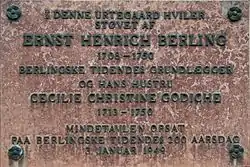 ![]() Mindetavle over Ernst Henrich Berling, Nye Urtegård ved Sankt Petri Kirkes gravkapeller | |