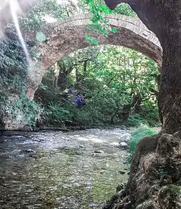 Erymanthos-floden og den gamle buede stenbro i landsbyen Tripotama, grænser op til Achaia-Ilia.