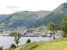 Byen Balestrand set over Esefjorden fra Tjugum kirke