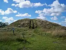 Tæt ved højen ligger et gravfelt med en stort antal gravhøje fra vikingetiden. 22 ud af oprindelig 88 høje er bevaret. Fund af rav og torshamre henviser til nordisk bosættelse. Lidt nord for højen strækker sig jordvolden Krümwaal