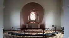 En glasmosaikrude af Mogens Henri Jørgensen indsættes.[34]