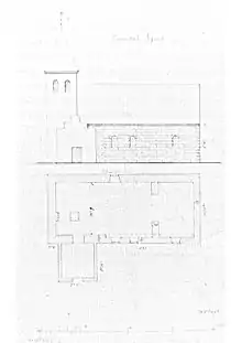 Kirken byggedes først i romansk stil[8] som et langhus og nok et kor – indvendigt bestående af granitkampe[9] murede omkring rå marksten,[10] og udvendigt af granitkvadre. På kirkens nordlige og sydlige side var en simpel firkantet indgang, og kirkens loft var fladt og gipset. Senere nedreves koret, hvorefter langhusets østlige ende afgrænset af en spidsbuet korbue benyttedes som sådan, og den nordlige indgang tilmuredes.[9] Nok også senere etableredes et lille rundbuet vindue på den nordlige side, og et tårn hvilende på fem piller[11] indbyggede i langhuset[9] og med pyramidetag af bly[11] tilbyggedes[12] over kirkens sydvestlige hjørne. Et våbenhus ved den sydlige indgang og en krydshvælving[9] synes tilføjede i det 15. århundrede.[11] Da var kirken indvendig 31¾ alen (19,93 meter) lang og 12¼ alen (7,69 meter) bred.[9] Kirken stod i det nordvestlige hjørne af en[2] ca. 65 meter lang og 65 meter bred kirkegård omhegnet af et 1,5 meter højt kampestensdige, sydvestligt i hvilket var en køreport og en gangport i en hvidkalket portal[13] i senmiddelalderlig stil af munkesten.[14]