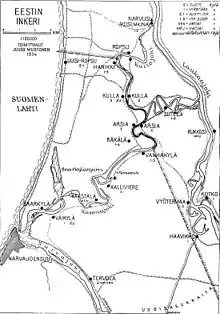 Området var mod vest begrænset af floden Narva og i øst af en linje fra Finske Bugt mod øst til Kullaåen lige syd for Bolsjoje Kuzemkino, derfra sydover langs Kullaåen og videre en bue mod floden Luga, derfra mod vest vest til søen Peipus.