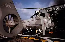 En AS565 MA Panther helikopter fra den franske flåde på Cassard (D614)