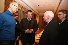Den amerikanske senator og tidligere republikansk præsidentkandidat John McCain besøgte d. 14. december Kyiv. Den demokratiske senator Chris Murphy kom dagen efter. Den 14. december havde McCain et møde med de ukrainske oppositionsledere: Vitalij Klytjko, Arsenij Jatsenjuk og Oleh Tjahnybok.[nb 7][40]