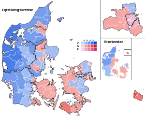 | A | Socialdemokratiet | 435.245 | 19,1 % | 3 | 592.645 | 21,5 % | 3 | ||