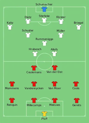 Det var Belgiens første EM-finale. Vesttyskland skulle spille deres tredje finale i træk, da de også i 1972 og 1976 havde spillet sig frem til den afgørende kamp. Det var blevet til sejr i 1972 over Sovjetunionen, mens Tjekkoslovakiet sejrede fire år efter.[1]
