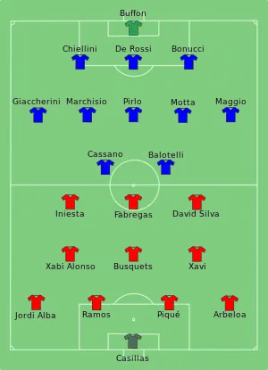 - "Full-time report Spain-Italy" (PDF). Union of European Football Associations. 10. juni 2012. Arkiveret (PDF) fra originalen 29. marts 2013. Hentet 10. juni 2012.