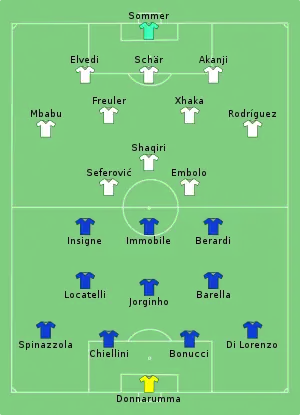 - "Tactical Line-ups – Italy v Switzerland" (PDF). UEFA.com. Union of European Football Associations. 16. juni 2021. Hentet 16. juni 2021.
