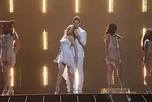![]() ![]() Ell og Nikki fremfører deres nummer på scenen i Düsseldorf ![]() Esprit Arena hvor årets grand prix blev afholdt | ||||||||||||||||||||||||||||||||||||||||