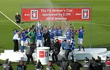 Everton Ladies fejrer, at de har vundet Pokalfinalen 2010