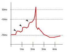 EPSPere (som IPSPere) er graderet (dvs. har en additiv effekt). Når flere EPSPer opstår på et enkelt område af den postsynaptiske membran er det sammenlægningen af alle de individuelle EPSPere, som giver den endelige effekt. Større EPSPere resulterer i en større depolarisering af membranpotentialet, som derved øger sandsynligheden for at den postsynaptiske membran opnår sin tærskel og frigiver et aktionspotentiale.