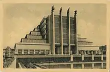 Postkort med afbildning af en af udstillingsbygningen Palais du Centenaire.
