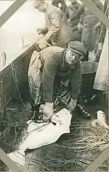 Fiskefangsterne var små under vintrene de første krigsår, og forårsfiskeriet i 1915 blev ramt af uvejr.[9] Priserne var imidlertid gode under krigen, så frem til den uindskrænkede ubådskrig begyndte i 1917, solgte færingerne især klipfisk til Sydeuropa. Fra 1916 sanktionerede Storbritannien mod eksporten til Norge og Danmark af frygt for, at fjenden ville blive forsynet med fisk, så Færøerne begyndte at eksportere tilsvarende mere til Storbritannien og Sydeuropa.[12] Der efter blev manglen på salt kritisk for klipfisketilvirkningen, men prisene på ilandført fisk fortsatte med at stige.[5] Fra 1914 til 1918 voksede Færøernes samlede fortjeneste fra fiskeriet fra 2,3 millioner til 10 millioner danske kroner.[13] Krigen forsinkede udbygningen af en virkelig havn i hovedstaden Tórshavn.[14]