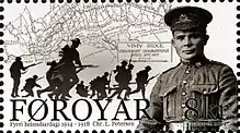 - Sophus Johannessen fra Tórshavn emigrerede sammen med sin hustru og blev britisk statsborger i 1911.[56] Han var handelsmand i Leith i Skotland.[57] Johannessen tjenestegjorde som menig i 11. bataljon af Argyll and Sutherland Highlanders i British Army og faldt på vestfronten i 1918, 41 år gammel.[58] Han blev begravet på en britisk krigskirkegård.[59]