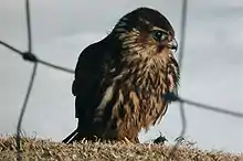 - Dværgfalk Smyril Den eneste rovfugl, som yngler på Færøerne i dag, er dværgfalken, men man mener også, at havørnen har ynglet på Færøerne i helt gamle dage. I dag yngler der formodentlig ca. 25 til 50 par dværgfalke på Færøerne. Bestanden er i fremgang nu efter en kraftig nedgang midt i sidste århundrede. Én af årsagerne til fremgangen i dag må nok skyldes de forholdsvis milde vintre, hvor mange stære og gråspurve klarer sig godt, og derved giver et godt fødegrundlag for dværgfalkene. Man ved det ikke med sikkerhed, men det formodes, at i hvert fald en del af den færøske bestand er standfugle. Den islandske bestand tæller mellem 1000 og 2000 par, hvoraf de fleste er trækfugle. Mange af dem passerer Færøerne både forår og efterår, når de er på vej til deres vinterkvarterer i området Irland, Skotland, England og Nordfrankrig. Så nogle af de dværgfalke, som er på Færøerne om vinteren, er antagelig islandske. – Et ordsprog, som bruges den dag i dag er, hvis for eksempel nogle børn leger godt sammen, og der pludselig kommer en ballademager til og ødelægger freden og idyllen, at man da siger: Nu kom smyril i stæreflok.