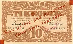 - Danmarks Nationalbank (30. januar 2014). "Færøske pengesedler". Arkiveret fra originalen 24. september 2020. Hentet 25. juli 2020.
