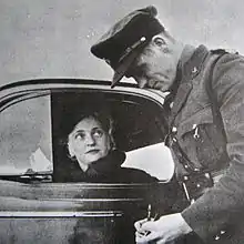 Canadisk politibetjent udskriver en færdselsbøde til en billist (1939).
