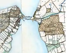 I Mariager Amt nævnes i Louns Sogn, Gislum Herred at Hvalpsund blev kaldt færgestedet mellem Sallingland og Gislumherred, samt at det var smalt på det sted."[81] Det oplyses om Næsborg Sogn, Slet Herred, Ålborghus Amt at de to bosiddende bønder på Agersundsgaard, skiftedes til at hjælpe rejsende over Agersund - altså fra Sletherred til Hanherred.[82] Færgehuset i Gammelsogn på Holmsland.[83]