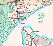 Om Svendborg: "Fra Svendborg er over Sundet til Færgestedet paa Taasinge 390 Favne."[58]