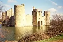 Bodiam Castle med voldgrav omkring.