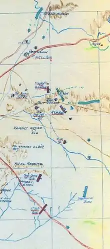 - Murrays fremskudte hovedkvarter for ekspeditionsstyrken ved al-Arish, uden reserver. Dets rolle var kun at rådgive,