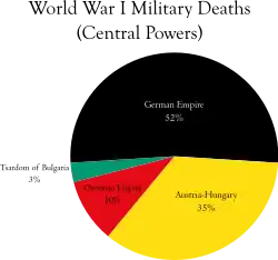 Grafisk fremstilling af tabstallene for centralmagterne.