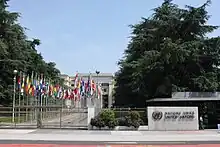 »Nationernes Palads« (Palais des Nations) hovedbygningen for FN's kontorer i Genéve. Alene i 2012 var Palais des Nartions vært for mere end 10.000 mellemstatlige møder.[1]