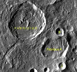 Fabriciuskrateret med omkringliggende satellitkratere | ||