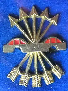 Falangistpartiets symbol: Åget og pilene, der blev brugt af Filip og Isabella af Spanien.