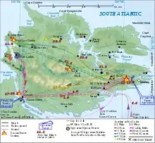 - Naval-History.Net – "Battle Atlas of the Falklands War 1982" Arkiveret 3. januar 2018 hos Wayback Machine (engelsk)