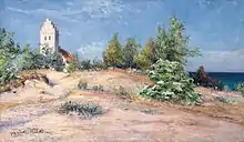 Vraget blev fundet i sandet syd for Falsterbo Kirke. Maleri af Charlotte Wahlström (1849-1924).