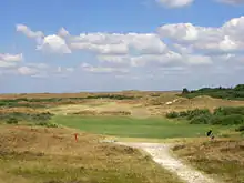 Har spilleren besluttet sig for et sikkerhedsslag, forbliver der en lang distance hvor den kommende green er blind på grund af flere klitter.